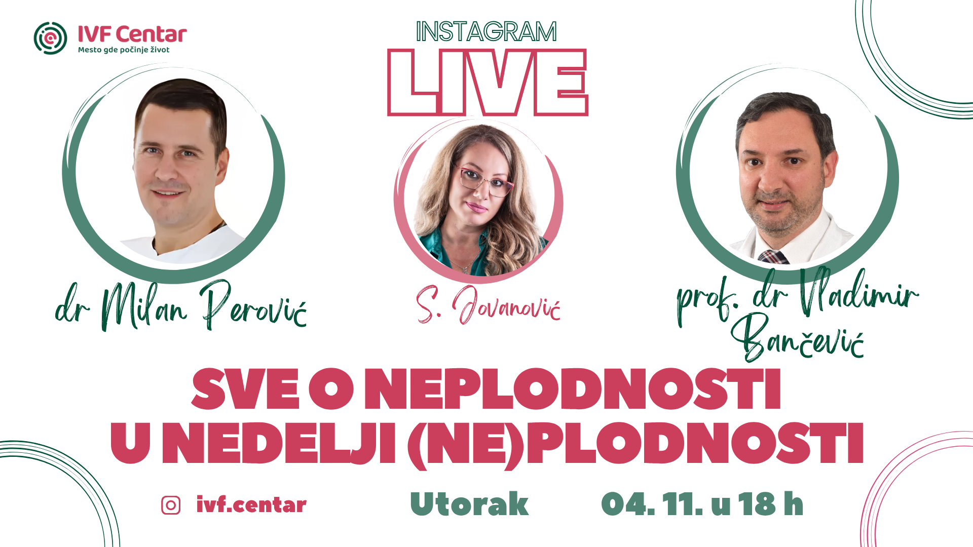 U okviru Nedelje (ne)plodnosti želimo da još jednom skrenemo pažnju na problem infertiliteta u Srbiji i pokažemo da muška i ženska neplodnost stoje rame uz rame i da im tako treba i pristupati, u sajedništvu, zajedničkim pristupom. Razgovaraćemo o svim aspektima lečenja ženske neplodnosti, uzrocima, mogućnostima lečenja u Srbiji, ali i o muškom infertilitetu, načinima lečenja, kako da poboljšamo plodnost muškarca, koje su sve to dijagnoze koje su rešive i kako su rešive, šta utiće na poboljšanje muške plodnosti i mnogim drugim temama koje se tiču kako ženske tako i muške plodnosti. Posebno ćemo pažnju posvetiti lečenju neplodnosti uz asistirane reproduktivne tehnologije i trenutnim mogućnostima u Srbiji. Nemojte propustiti ovaj IG Live jer ćemo razotkriti baš sve i potrudićemo se da vam pomognemo, a vi možete aktivno učestvovati i postavljati pitanja.