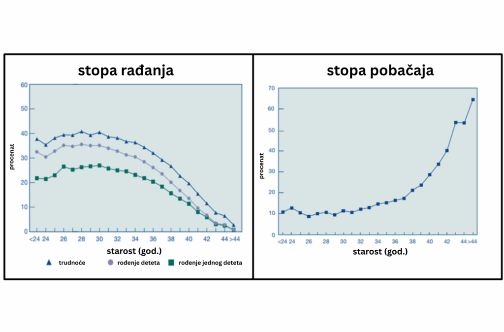 Razvoj jajnih ćelija se sa godinama menja. Kvalitet jajnih ćelija takođe. Sa porastom godina, stopa rađanja opada, dok se stopa spontanih pobačaja povećava.